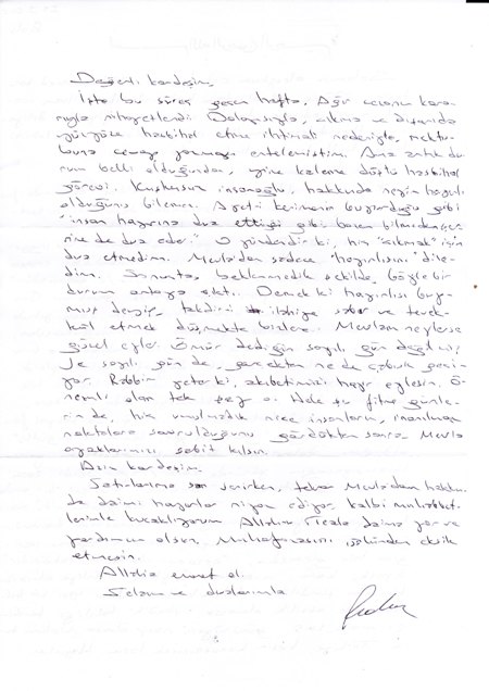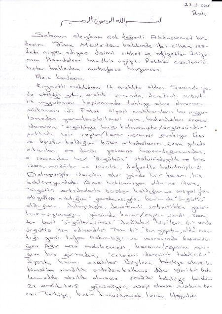 Rıdvan Çağrıcı'nın, tahliye olmadan önce Cezaevi Komisyonu Üyemiz Samet Beycioğlu'na gönderdiği mektup