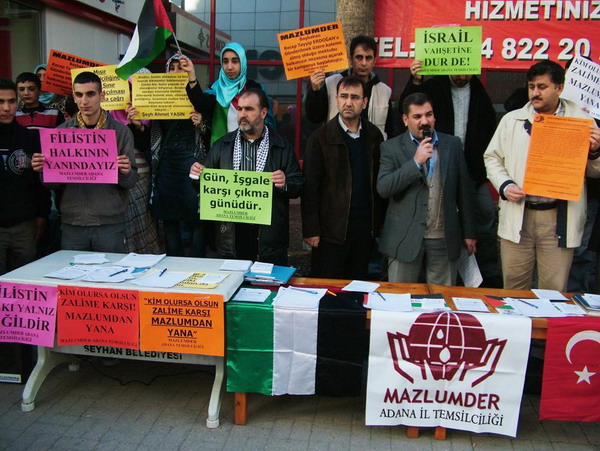 Adananın en işlek caddelerinden çakmak caddesinde açılan imza stantlarına gerek adana halkı gerek sivil toplum kuruluşlarından yoğun bir şekilde ilgi gördü ve görmeye devam ediyor. Filistin'deki mağduriyeti giderme İsrail vahşetini durdurma adına yapılan bu etkinliklerin halk üzerinde ciddi bir etki yapması ve halkın özellikle sadece imza kampanyası mı başka şeylerde yapılmalı demesi halkta ciddi bir öfkenin hakim olduğunu gösteriyordu.
