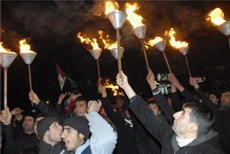 Bu akşam burada bulunmamızın elbette çok anlaşılır bir nedeni var. Zira seçtiğimiz bu yer ülkeyi yöneten iktidar partisinin il teşkilat binasıdır. Yürütme gücünü elinde bulunduran partinin il teşkilatı aracılığıyla günlerdir infial halinde bulunan kamuoyunun taleplerini kendilerine iletmek için özellikle seçilmiştir. Milletin talepleri doğrultusunda, uyarı ve nasihatten anlamayan İsrail'e karşı, Devlet olma gücünün, İsrail'e karşı etkin bir şekilde kullanılması çağrısında bulunmak ve bunun takipçisi olacağımızı bildirmek için buradayız.