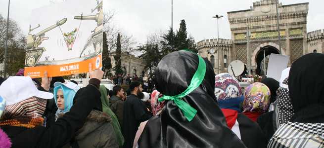 İsrail’in Gazze’de yaptığı katliamı protesto etmek için binlerce kişi Beyazıt Meydanı'nda toplandı. MAZLUMDER İstanbul Şubesi’nin de içinde bulunduğu birçok dernek ve vakıf tarafından düzenlenen eylemde, şehitler için gıyabi cenaze namazı kılındı.