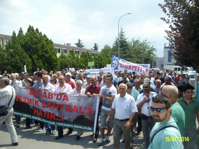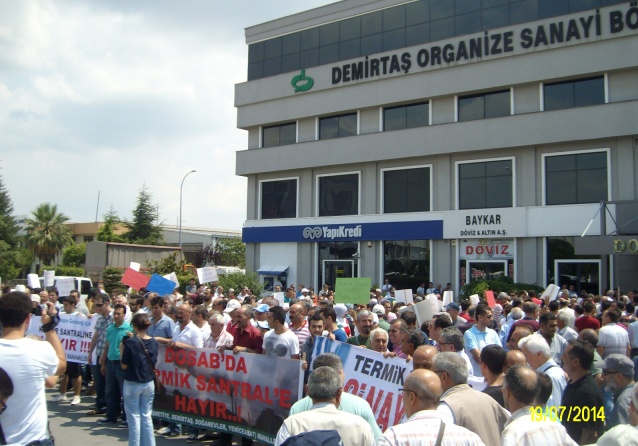 Bizler, bugün buraya, Demirtaş Organize Sanayi Bölge Müdürlüğü tarafından DOSAB sınırları içinde kurulması planlanan kömürle çalışacak DOSAB Termik Buhar ve Enerji Santrali projesine karşı tepkimizi ortaya koymak, vatandaş olarak bu santralin yapılmasını istemediğimizi ve bu santralin yapılmaması için gereken her yola başvuracağımızı bildirmek için toplandık.