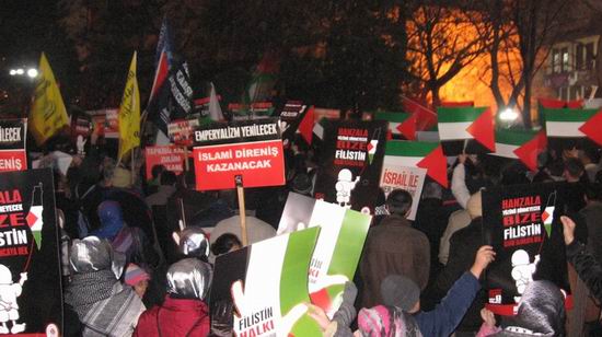 MAZLUMDER Bursa Şubemizinde dahil olduğu, 'Filistin Gönüllüleri Dayanışma Platformu' olarak İsrail Saldırılarını telin etmek ve Filistine destek için 12 Ocak pazartesi'nden beri akşamları saat 19 da Kent Meydanı'nda buluşuyoruz Basın açıklamalarının yanı sıra " imza kampanyasının" da düzenlendiği eyleme Filistin gönüllüleri yağmur soğuk demeden her akşam aynı saatte şehrin en işlek noktalarından biri olan Kent Meydanında bir araya geliyor. Her akşam bir STK temsilcisinin yaptığı konuşmalarda dünyanın gözü önünde işlenen katliamların bir an önce son bulması için çağrıda bulunuluyor . Son olarak platform adına yapılan basın açıklamasında şu ifadeler kullanıldı; Hükümetin uluslararası diplomatik girişimlerini olumlu buluyoruz. Milli Eğitim Bakanlığı'nın Türkiye genelinde okullarımızda 1 dakikalık saygı duruşunu ümit verici bir adım olarak görüyoruz. Ancak, bunları yeterli görmüyoruz. Hemen Filistin halkı için Türkiye'de bir gün YAS ilan edilmelidir. İsrail'le bütün ilişkilerin kesilmesini istiyoruz. Buna karşılık Filistin'le bütün kanalların açık tutulmasını istiyoruz. Bu kapsamda; Türkiye İsrail'le imzalanan tüm askeri anlaşmaları feshetmelidir. İsrail pilotlarına Türkiye'de eğitim yaptırmamalıdır. Hava sahasını İsrail uçaklarına kapatmalıdır. İstenmeyen adam ilan edilmelidir. Türkiye, İslam Konferansı Teşkilatını hemen toplamalıdır. İsrail malları boykot edilmelidir