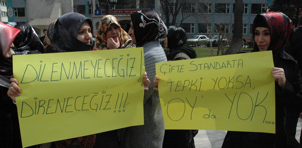 Yargı erkinin, sadece ve sadece HALKIN seçtiği yasama organının çıkardığı yasalar çerçevesinde kararlarını verebileceği unutulmamalıdır. Hiçbir çağda halkın iradesinden bağımsız, yanlışlar ve yasaklar üzerine bina edilmiş uygulamalar hukuk kuralı teşkil edememiştir. Bugün için zorlama yargı kararları üzerinden yasaklar bina etme girişimleri de bu minvalden olup hukuk kuralı teşkil edemeyeceği gibi halkın iradesi karşısında da tutunmaktan kati olarak uzaktır. Biz İnsan hakları savunucusu olarak, başörtülü kadınlar olarak, kendi hakkını savunan sade birer vatandaş olarak bu ülkenin yetiştirdiği genç nesil olarak; artık oylarımızın çantada keklik olarak düşünülmesini reddediyoruz. Siyasi partiler bu hukuka aykırı duruma tepki göstermedikleri müddetçe oy kullanmayı reddediyoruz.