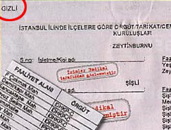 'Gizli' damgalı olan ve okuyanları dehşete sürüklemeye aday fişleme çalışması, semt semt, sokak sokak çizelgelere işlenmiş. Fişleme çizelgesinde, İstanbul'un alfabetik sıraya göre dizilmiş olan her semtinde yaşayan mekân sahiplerinin isimlerinin karşılığında, "PKK, DHKP-C, TİKKO, MLKP, aşırı sol, irtica, Nurculuk, Süleymancı, Nakşibendi" gibi değerlendirmeler var.