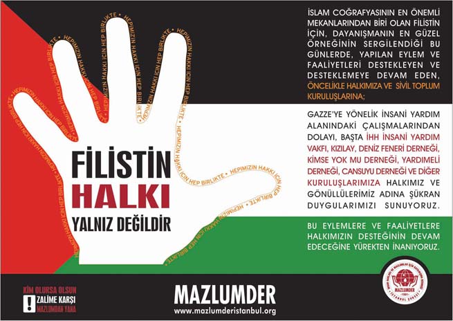 Filistin Halkını Destekleyen Herkese Teşekkür Ediyoruz...