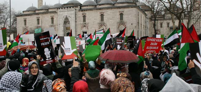 İsrail’in Gazze’de yaptığı katliamlar devam ederken, Beyazıt Meydanı’nda toplanan MAZLUMDER, İHH, Özgür-Der, Akabe Vakfı, AKV, Anadolu Gençlik, Medeniyet Derneği, İnsan ve Medeniyet Hareketi, Kudüs-Der, Akdav gibi kuruluşların oluşturduğu Filistin Dostları, İsrail'in Gazze Şeridi'ne düzenlediği hava saldırısını protesto ettiler.