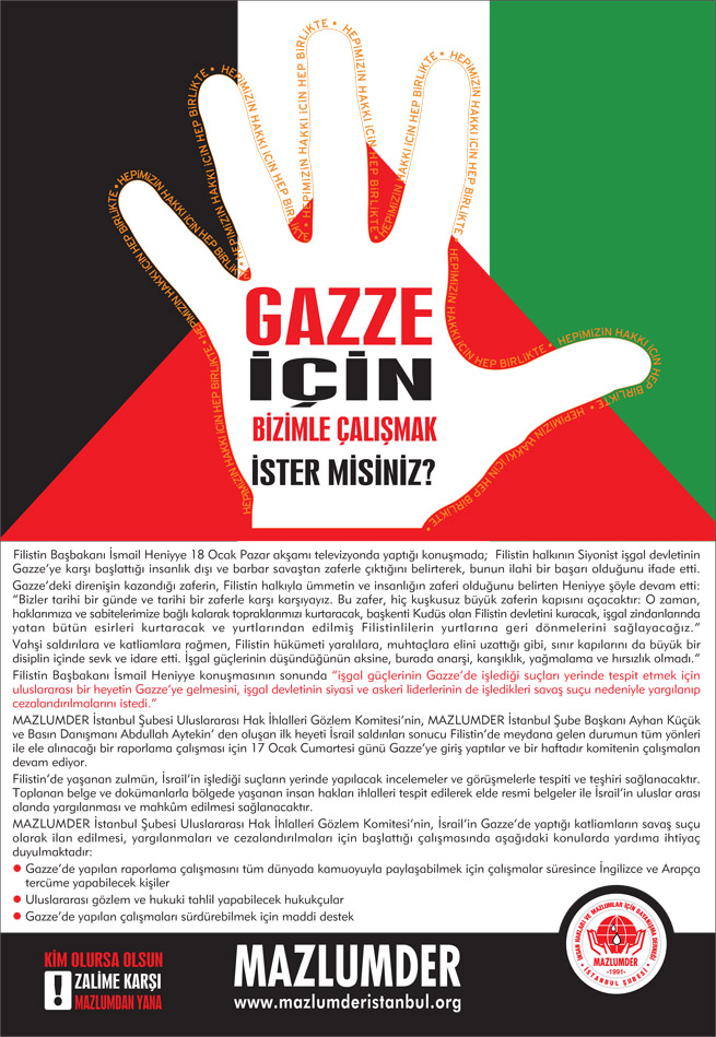 Gazze İçin Bizimle Çalışmak İster misiniz?