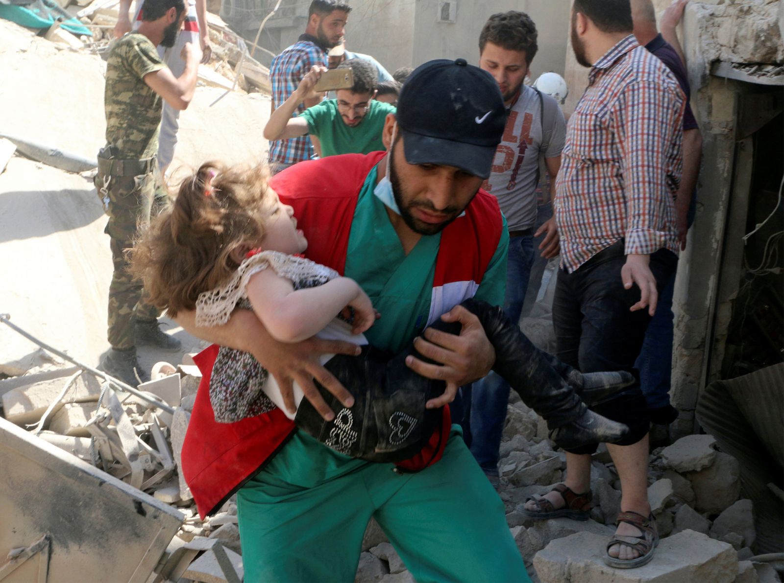 Halep'te son ağaç bombalandı. Son anne, çocuğunun kanında, atılan bombayla boğuldu.