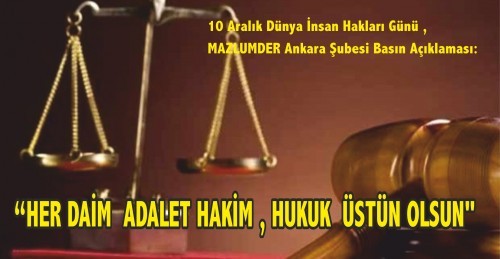 10 Aralık Dünya İnsan Hakları Günü , MAZLUMDER Ankara Şubesi Basın Açıklaması: