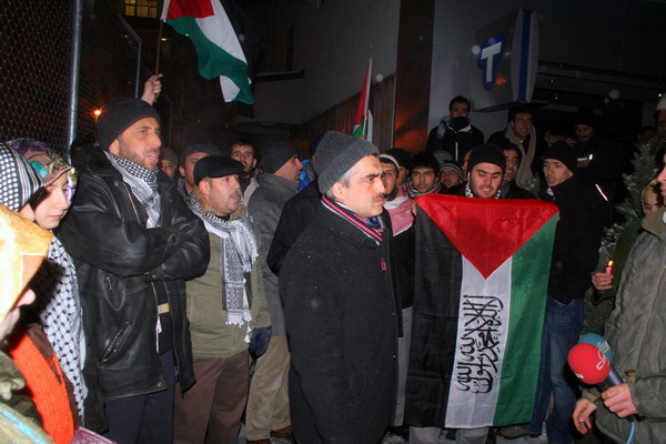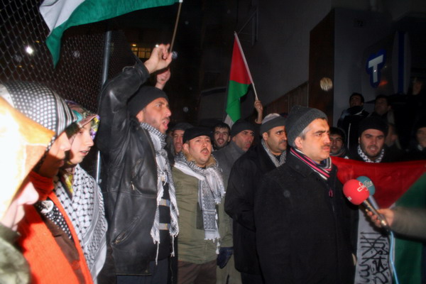 İsrail'in Gazze'ye yönelik saldırılarını kara harekatıyla sürdürmesi Ankara'da protesto edildi. MAZLUMDER'e üye bir grup, gece saat 03.00'da İsrail Büyükelçiliği önünde saldırıları kınadı. Grup büyükelçilik önünde, "Katil İsrail, Ortadoğu'da defol.. Siyonist İsrail, Ankara'dan defol.. Katil ABD, katil İsrail" sloganları attı. İsrail'in 1948 yılında meşru olmayan yollarla kurulduğunu belirten MAZLUMDER Genel Başkanı Faruk Gergerlioğlu, "Bizi buraya gece yarısı getiren etken, İsrail'in hava harekatı sonrasında kara harekatını devam ettirmesiyle, korkunç bir trajediye imza atmasıdır. Katil İsrail, kurulduğu 1948 yılından beri Ortadoğu kan saçmaya devam etmiştir. İsrail'in kuruluşu katliamdır. Şu ana kadar yaşadığımız süreç de katliamdır ve bundan sonra da katliam olacaktır. 2 senedir yaşanan drama tüm dünya sessizdi. 8 gün önce bir soykırım harekatı başlatıldı. Aslında bu soykırım harekatı 2 yıldır bekleyen insanlığa indirilen bir darbeydi. Katil Bush, dün akşam yaptığı açıklamada, 'İsrail kendini savunuyor' dedi. AB Dönem Başkanı, Çek Cumhuriyeti Başbakanı da aynı şeyi söylemektedir." dedi.