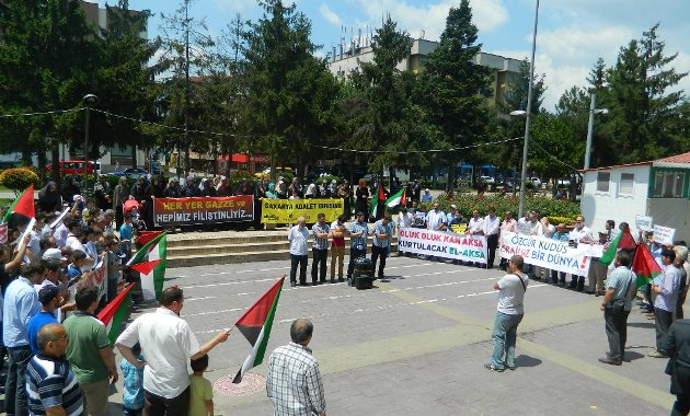 SAGİR (Sakarya Adalet Girişimi) tarafından düzenlenen ve MAZLUMDER üyelerinin de destek verdiği açıklamada platform adına Mazlumder Sakarya Şubesi yönetim kurulu üyelerinden Muharrem Demircan’ın okuduğu basın açıklamasında “Mübarek Ramazan ayına kavuşmuş olmanın sevinci, bir kez daha hüzne bulandı. Siyonist işgal altındaki Kudüs ve abluka altındaki Gazze, İsrail’in son terörist saldırılarıyla zor günler yaşıyor. 20 gün önce kaçırıldığı iddia edilen üç Yahudi yerleşimcinin öldürülmüş olarak bulunmasıyla birlikte işgal ordusu, geleneksel zorbalığına hız verdi. Son üç haftada 600’den fazla Filistinli sebepsiz yere gözaltına alındı. Daha acısı ise Kudüs’te 15 yaşındaki Muhammed Ebu Hudayr’ın üç Siyonist yerleşimci tarafından kaçırılıp, öldürülmesi oldu. Sabah namazına giderken Şa’fat Camisi’nin önünden kaçırılan Muhammed’in öldürülmeden önce çok fena şekilde işkenceye uğradığı ve daha sonra yakıldığı anlaşıldı.” dedi.