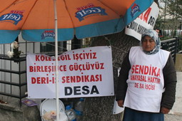 "İstanbul/ Sefaköydeki Desa Deri A.Ş.'de sekiz yıldır çalışan Emine Arslan çalıştığı işyerinin kaldırımında kendisini sendikaya üye olduğu için işten kovan Desa Deri'den hakkını istediği, işverene yakın kişilerce direnişi bırak çocukların var yazık olur denilerek tehdit edildiği, Emine Arslan ile iletişim kuran işçilerin taciz edildiği" ifade edilmektedir.