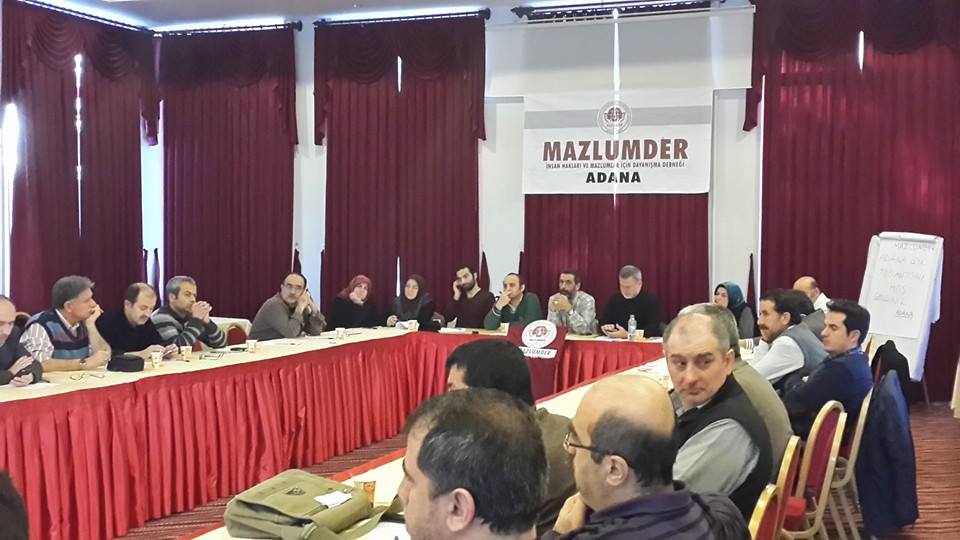 MAZLUMDER Adana Şubesi’nin ev sahipliğinde biraraya gelen MAZLUMDER’in Genel Yönetim Kurulu Üyeleri, şube başkanları ve il temsilcileri, MAZLUMDER Adana Şubesi Başkanı Orhan Göktaş’ın yaptığı açış konuşmasından sonra, derneğin iç meselelerinin yanısıra gündemdeki insan hakları ihlallerini değerlendirerek MAZLUMDER’in Çözüm Süreci’ne yapabileceği katkılar üzerine konuştu.