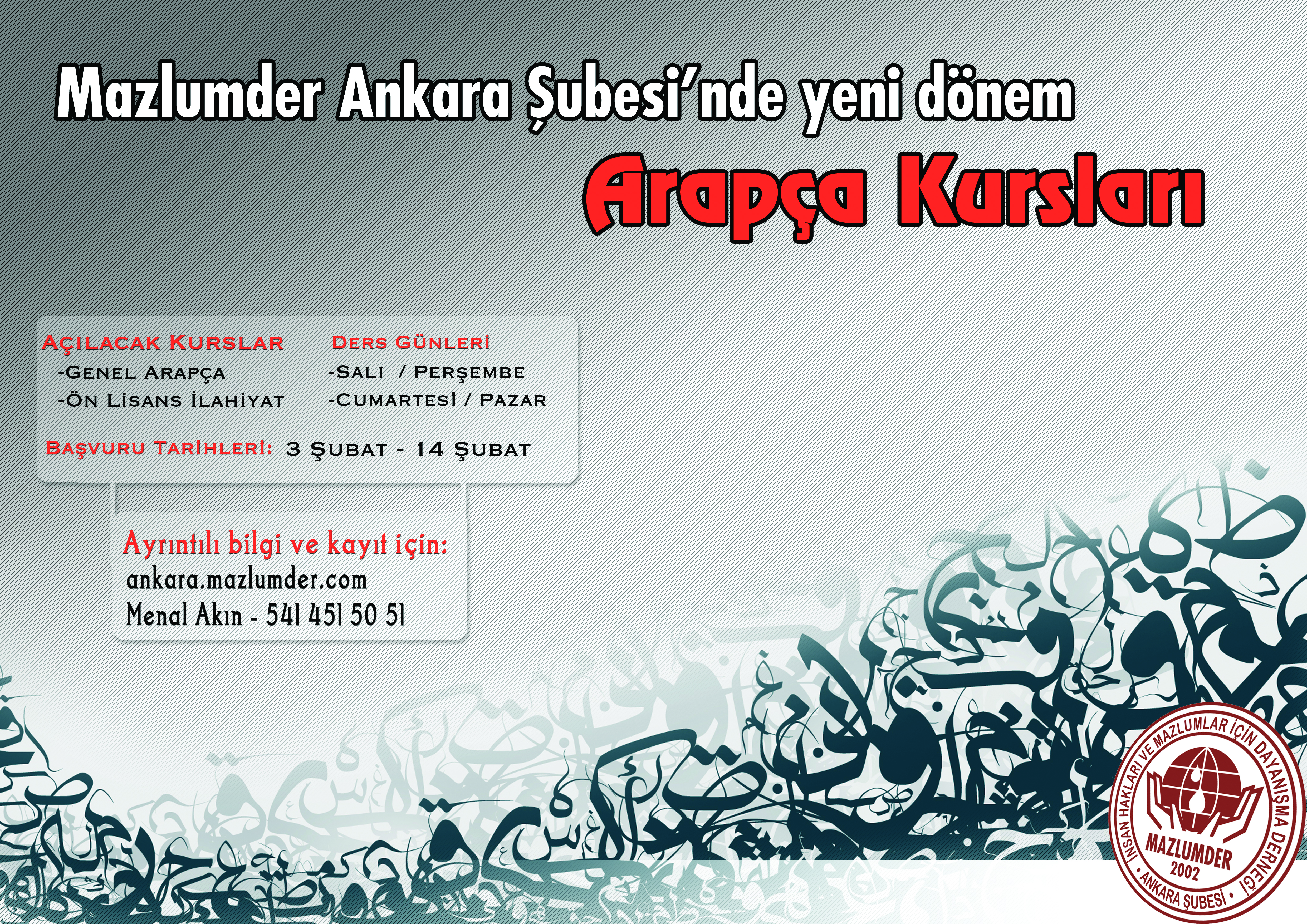 MAZLUMDER Ankara Şubesi'nde Arapça Kurslarında Yeni Dönem Başlıyor