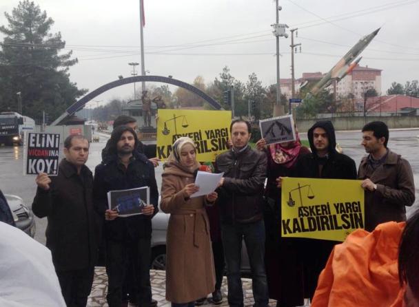 Burada toplanmamızın nedeni, hemen yanıbaşımızda duran kışlanın içerisinde doğal bir biçimde hak ihlallerinin devam ediyor oluşudur. Bilindiği gibi Türkiye Cumhuriyeti Devleti’nde askerlik, kamu hizmeti olarak kabul edilmekte ve bu kamu hizmeti, yani askerlik, zorunlu bir biçimde uygulanmaktadır. Her ne kadar dönem dönem “bedelli” askerlik yapma fırsatı hasıl olsa da, askerlik yapmama gerçeği bir hak değil, ancak bir fırsat olarak karşımıza çıkmaktadır. Kaldı ki taksitlendirme, kredi kullandırma gibi devlet uygulamaları da askerliğin bedelli yapılmasını devlet tarafından fırsata dönüştürüldüğünün, yani bu işin bir kurtuluşunun olduğunun ve dolayısıyla kurtuluşun olduğu yerde pek de sevgi ve gönül bağı ile yerine getirilecek bir kamu hizmetinin olmadığının resmi, tüm çıplaklığıyla karşımızda durmaktadır.