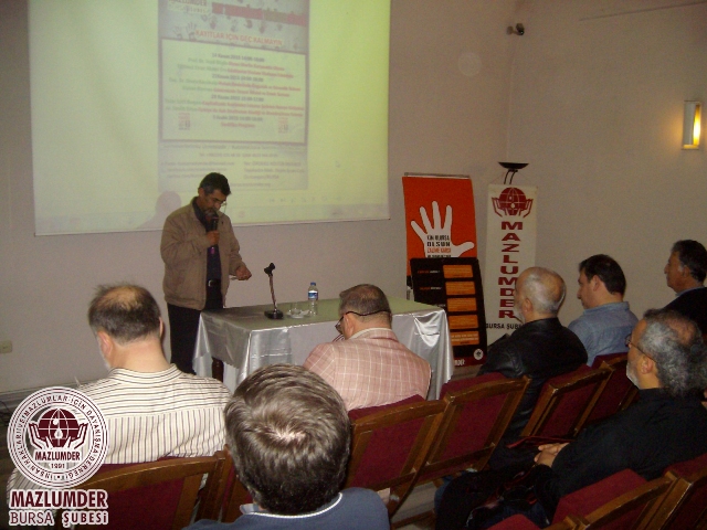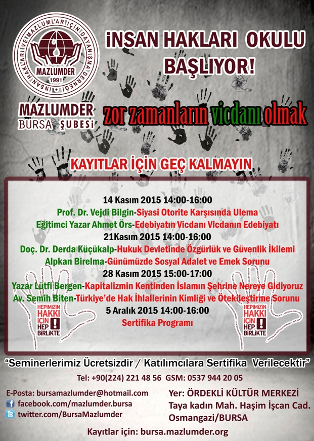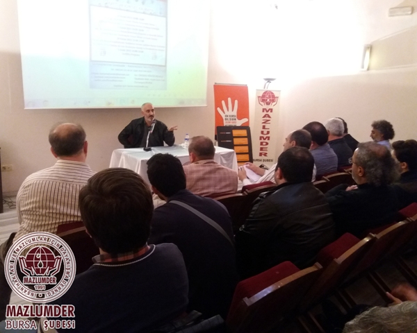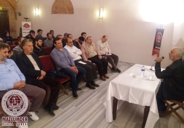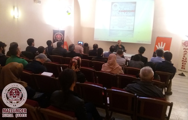 Mazlumder Bursa Şube tarafından düzenlenen “Zor Zamanların Vicdanı Olmak” temalı İnsan Hakları Okulu eğitim seminerleri 21 Kasım Cumartesi saat:14.00’da yapılan ikinci hafta semineri ile Ördekli Kültür Merkezi’nde devam etti.