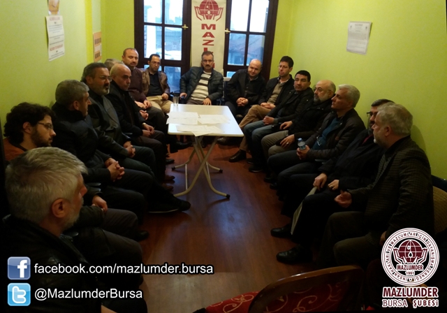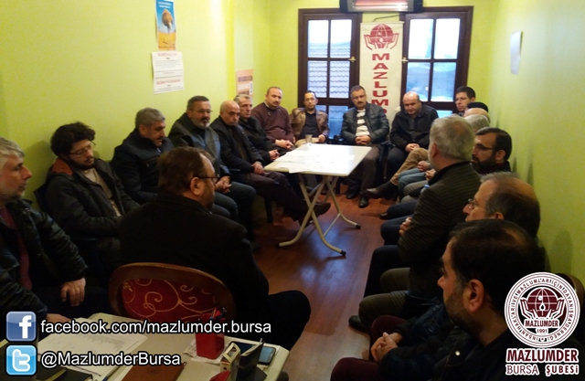 Mazlumder Bursa Şubesinin 11. Olağan Genel Kurul Toplantısı 5 Mart 2017 tarihinde salt çoğunluk sağlanamadığından 12 Mart 2017 Pazar günü aşağıdaki gündem ile dernek şubesinde gerçekleştirildi.