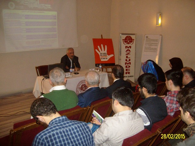 Sözü ilk olarak Doç. Dr. Kasım KÜÇÜKALP aldı. Sayın KÜÇÜKALP’in konuşmasından bazı notlar şu şekilde: “Bugün 28 Şubat, aslında 28 Şubat ona önem atfettiğimiz kadar güçlü. Dünya ile kurduğumuz ilişki sahih olduğu sürece bu ve buna benzer zulümlerin de hiçbir gücü kalmayacaktır. Çünkü biz inanıyoruz ki; ilim ve mülk yalnız Allah’ındır bu anlamda Müslüman bir şeye sahip olamaz ve dolayısıyla da kaybedeceği bir şey de yoktur.