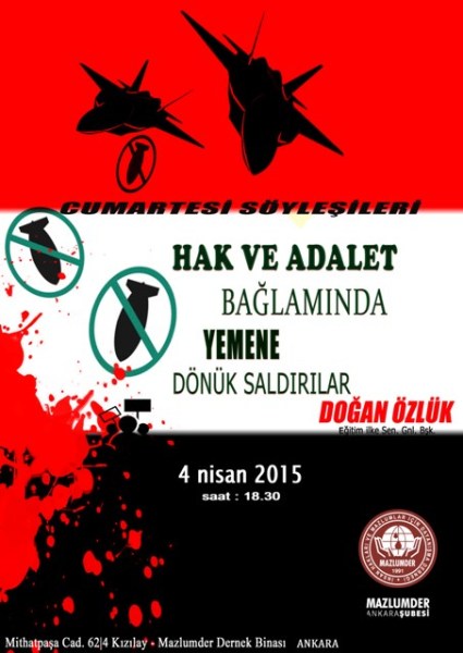 İnsan hakları bağlamında güncel meselelerin ele alındığı Cumartesi Söyleşileri'nde bu ay Eğitim İlke-Sen Genel Başkanı Doğan Özlük'ün katılımıyla 'Hak ve Adalet Bağlamında Yemen'e Yönelik Saldırılar' başlığı altında konuşulacak.