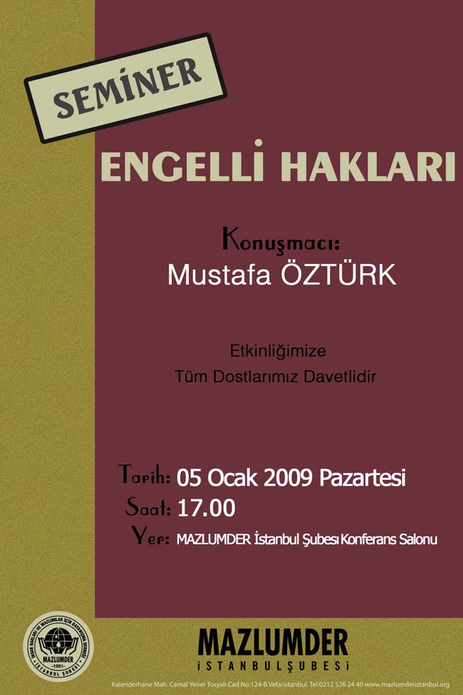 Anasayfa › Faaliyetler › Basın Açıklamaları › MAZLUMDER`den Seminer `Engelli Hakları`