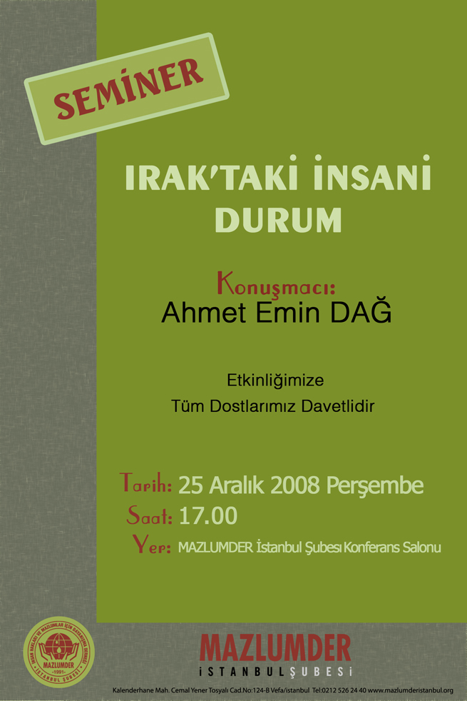 MAZLUMDER`den Seminer "Irak`taki İnsani Durum"