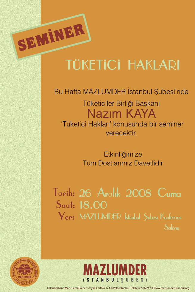 MAZLUMDER`DEN SEMINER "TÜKETİCİ HAKLARI"