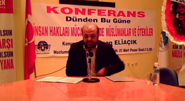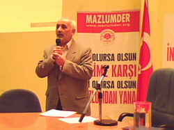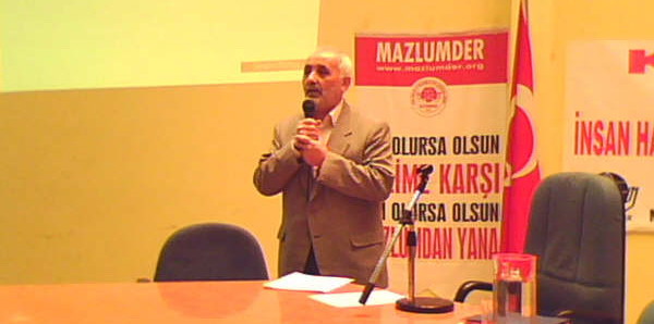 Recep ihsan ELİAÇIK bir saatten fazla süren konuşmasında, Mazlum-der i yakından tanıdığını Mazlum-der 'e önem verdiğini ve faaliyetlerine destek olduğunu bildirerek sözlerine başladı.
