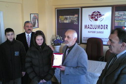 Ziyaret sırasında Gazze deki saldırılar ve katliamların sona erdirilmesi için yapılan çalışmalardan dolayı MAZLUMDER Kayseri Şube adına Şube Başkanı Ahmet TAŞ'a bir plaket sunan öğretmen ve öğrenciler 23 gün süren kanlı saldırılarda katliamın sona erdirilmesi için yapılan çalışmalar (Gıyabi cenaze namazları.Basın açıklamaları, yardım kampanyaları,İsrail ürünlerini Boykot kampanyası mazlumlarla dayanışma gecesi ,18 Ocak ta Ankara sıhhiye meydanında yapılan Büyük mitinge 25 otobüsle kayserinden destek) için teşekkür ve takdirlerini ilettiler. İnsanlık adına yaşanılır daha güzel bir dünya adına gösterilen gayretler için Kayseri şubesini plaketle ödüllendirdiklerini belirttiler.