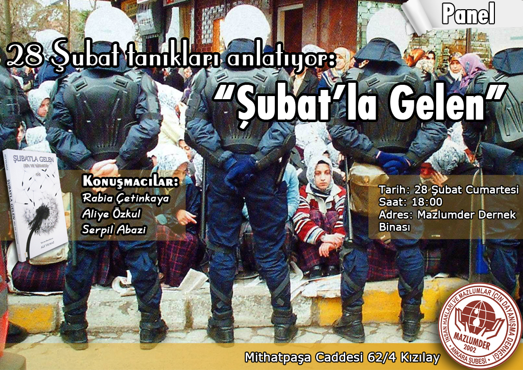 MAZLUMDER Ankara Şubesi'nde 28 Şubat zulmünün yıl dönümünde, dönemin tanıklarının dilinden ''Şubatla Gelen'' konulu panel gerçekleştiriliyor.