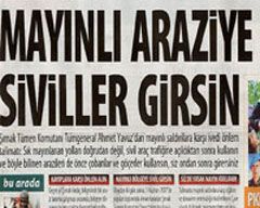 Doğu'da asker kayıplarının önüne geçmek için PKK'nın döşediği mayınlara karşı sivillerin öne sürülmek istendiği ortaya çıktı. Şırnak Tümen Komutanı Tümgeneral Ahmet Yavuz imzasıyla birliklere gönderilen "gizli" yazıda, asker kayıplarının azaltılması için önce sivillerin mayınlı alana gönderilmesi, mayın olma ihtimali bulunan yollara önce sivil araçların gönderilmesi ve mayın tespiti için köpeklerin itlaf edilmesi gibi öneriler yer alıyor.