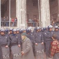 ediyor. Çevik kuvveti gören öğrenciler arasındaki tahrikçiler, bu