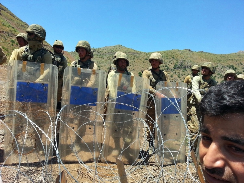 Dün (19.06.2014), Van’dan İHD’li arkadaşlarla birlikte MAZLUMDER olarak Meskan Dağı’ındaki gelişmeleri yerinde görmek üzere Hakkari’ye hareket ettik. Yolboyunca gözlemlediğim kadarıyla barış sürecinin başlamasının hemen ardından boşaltılmış olan korucu kontrol noktalarının yeniden canlandırıldığı ve korucuların kalabalık bir şekilde buralarda tutulduğu şeklindeydi. Hakkari’ye vardığımızda İHD Genel Başkanı Öztürk Türkdoğan ve bölgeden gelen bir grub İHD temsilcisi bekliyordu. Onlarla kısa bir tanışma ve sohbetten sonra birkaç yeri ziyaret ettikten sonra Meskan Dağı’na hareket ettik. İHD Genel Başkanı Öztürk Türkdoğan ile birlikte bölgeden gelen bir grub İHD temsilcisi, MAZLUMDER Van Şubesi Başkanı Yakup Aslan, MAZLUMDER Hakkari Şube Başkan Yardımcısı Yaşar Kaplan, ve bazı STK temsilcileri, Meskan Dağı'nda yapımı devam eden kalekol ve askeri hareketliliği yerinde görmek için bölgede incelemelerde bulunmak üzere sarp ve topraklı yoldan kararlaştırılan noktaya gittik. Karakolun yapılması düşünülen tepeye yakın 2600 rakımlı Meskan Dağı'nda kurulu bulunan Barış Nöbet Çadırı'nıda kısa bir görüşmeden sonra, karakolun yapılacağı alana doğru harekete geçtik.