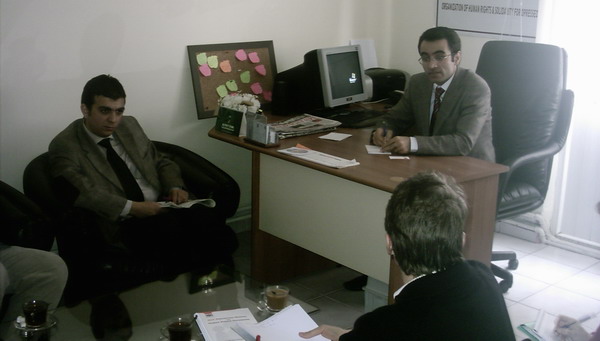 MAZLUMDER Genel Başkan Yardımcısı Av. Emrullah Beytar ve Genel Merkeze Ziyaret için Gelen MAZUMDER Batman Şube Başkanı Av. Murat Çiçek, Merkezi Brükselde bulunan Uluslararası İnsan Hakları Koruma Örgütünden bir heyet ile insan hakları kuruluşlarına yapılan baskılar konusunda görüş alışverişinde bulundu.